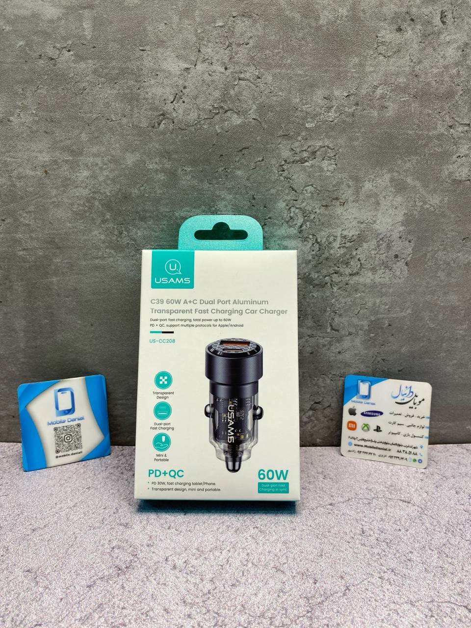 شارژر فندکی فست شارژ ماشین تایپ سی 60 وات طرح شفاف یوسامز