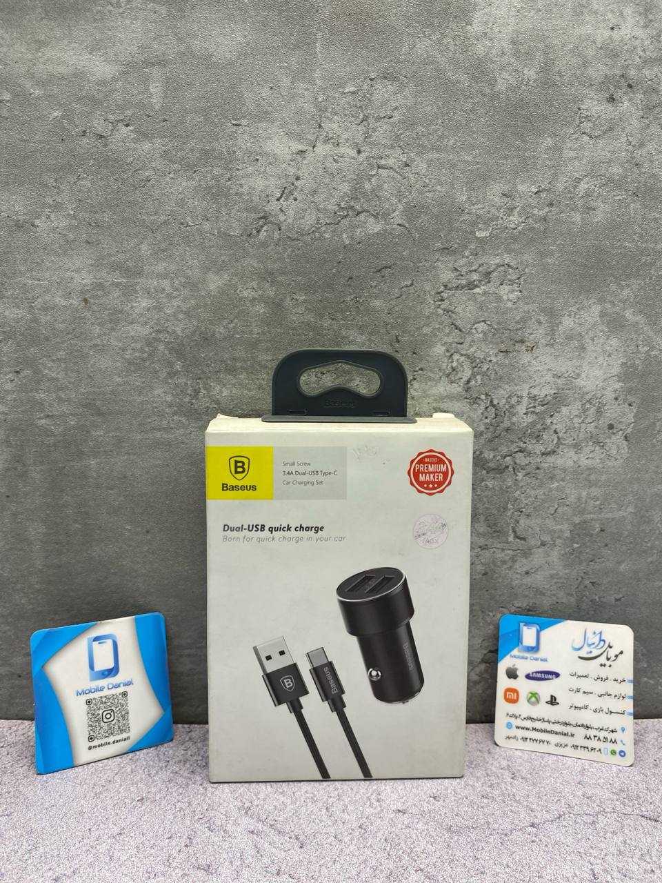 شارژر فندکی بیسوس 3.4 آمپر فست شارژ دو پورت به همراه کابل تایپ سی