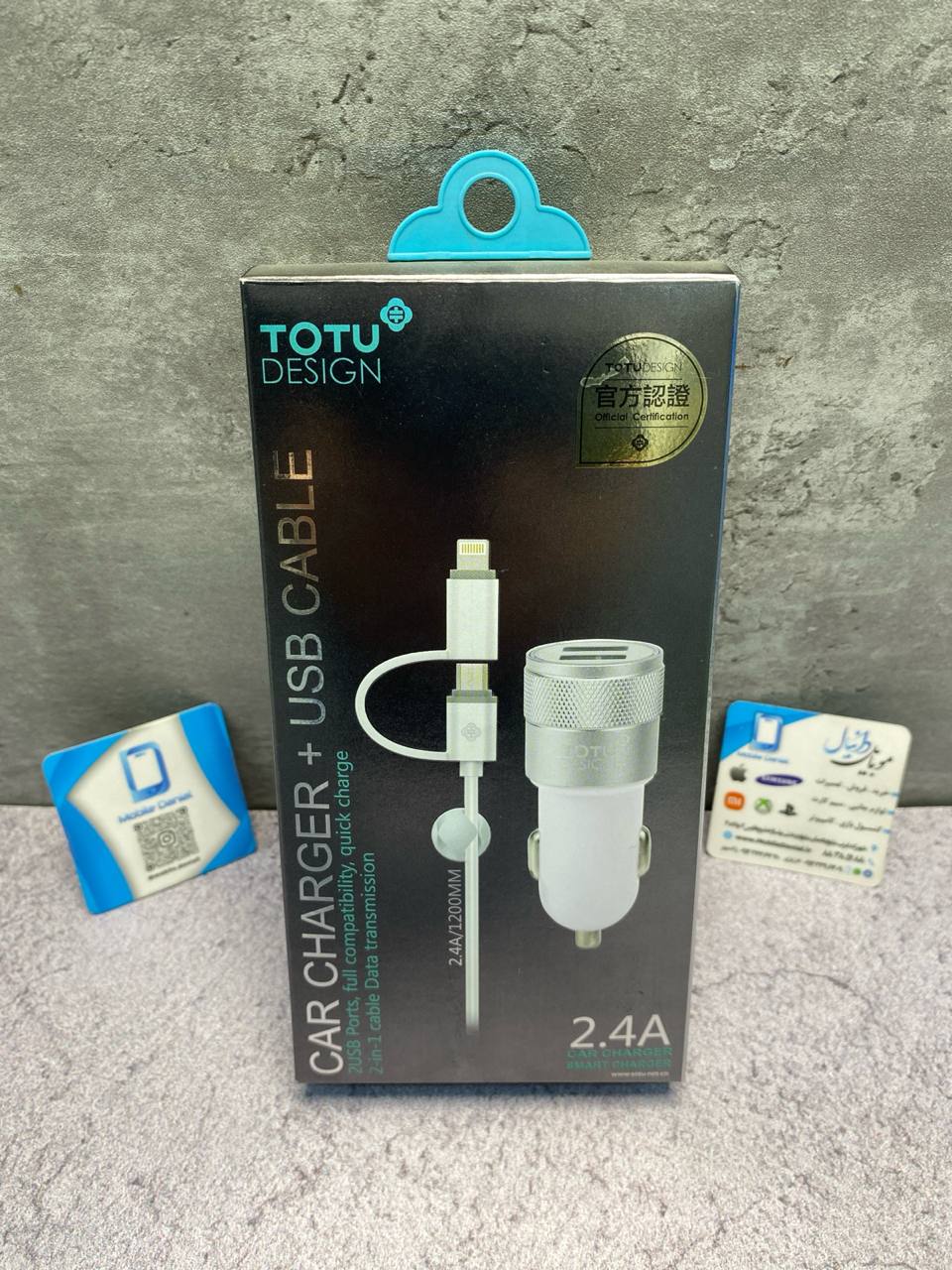 شارژر فندکی توتو دیزاین 2.4 آمپر به همراه کابل یو اس بی و لایتنینک